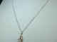 Here you find a solitary Freshwater pearl, suspended from a Sterling chain alongside a Sterling silver Accent. The silver accent has been brushed for texture, adding contrast to the smooth finish of the pearl. This necklace measures 18 inches and closes with a Sterling lobster claw in the back.