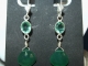 All will be green with envy of these earrings... Deep green Chalcedony heart briolettes hang from faceted Mexican quartz gemstones, set in Sterling silver bezels. They are an intense stone, pale green in color. The earrings are 1.5 inches long and are suspended from Sterling lever back earrings. These earrings can be changed to a standard Sterling earwire upon request.