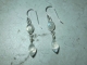 Here we have a Moonstone cabochon, set in a Sterling silver bezel, while a smooth marquise Moonstone briolette is found hanging out below... Rainbow Moonstones are known for the bluish shimmers of light they give off, a natural opalescence common with this stone. Suspended on a pair of Sterling earwires, these measure in at 1.25 inches.