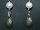 Here you find a faceted Pyrite teardrop gemstone hanging about freely below a Freshwater pearl. At just 1.5 inches in length and mounted on Sterling silver earwires, these earrings go with just about anything.